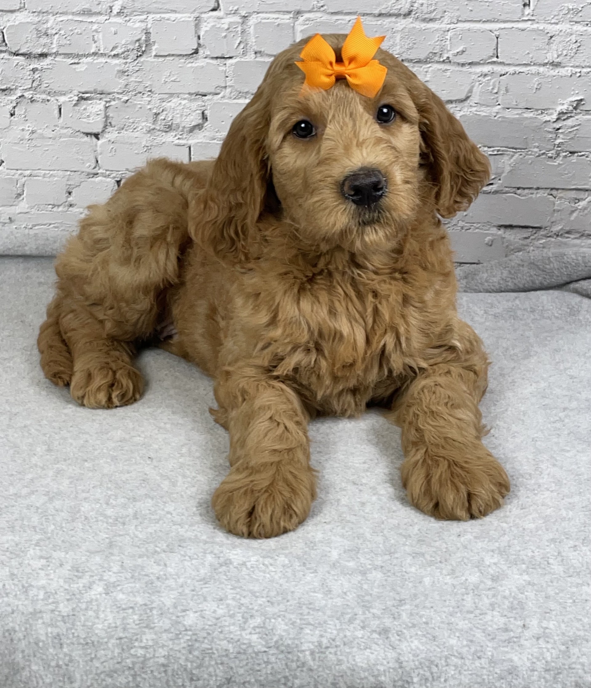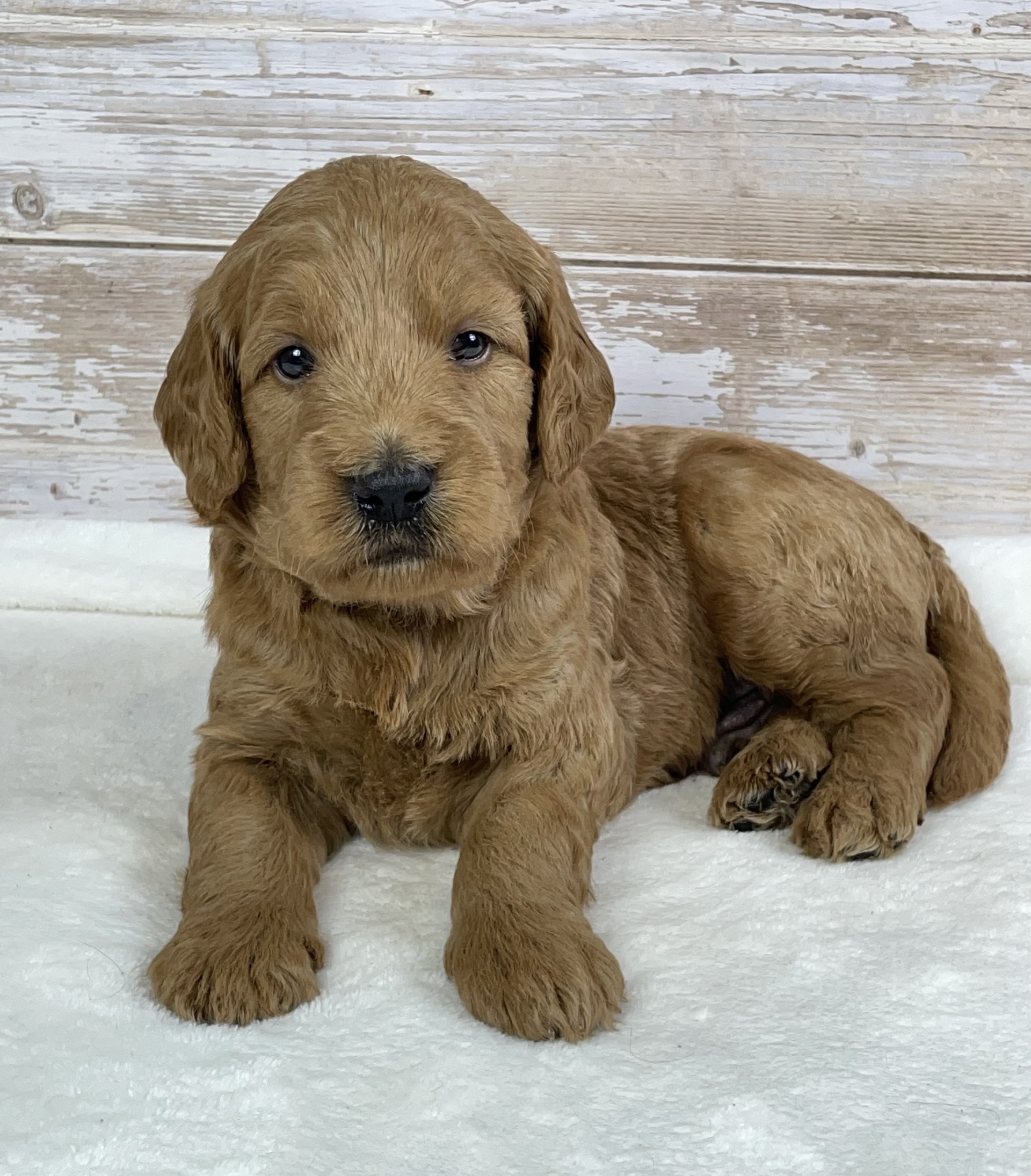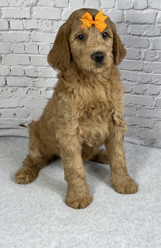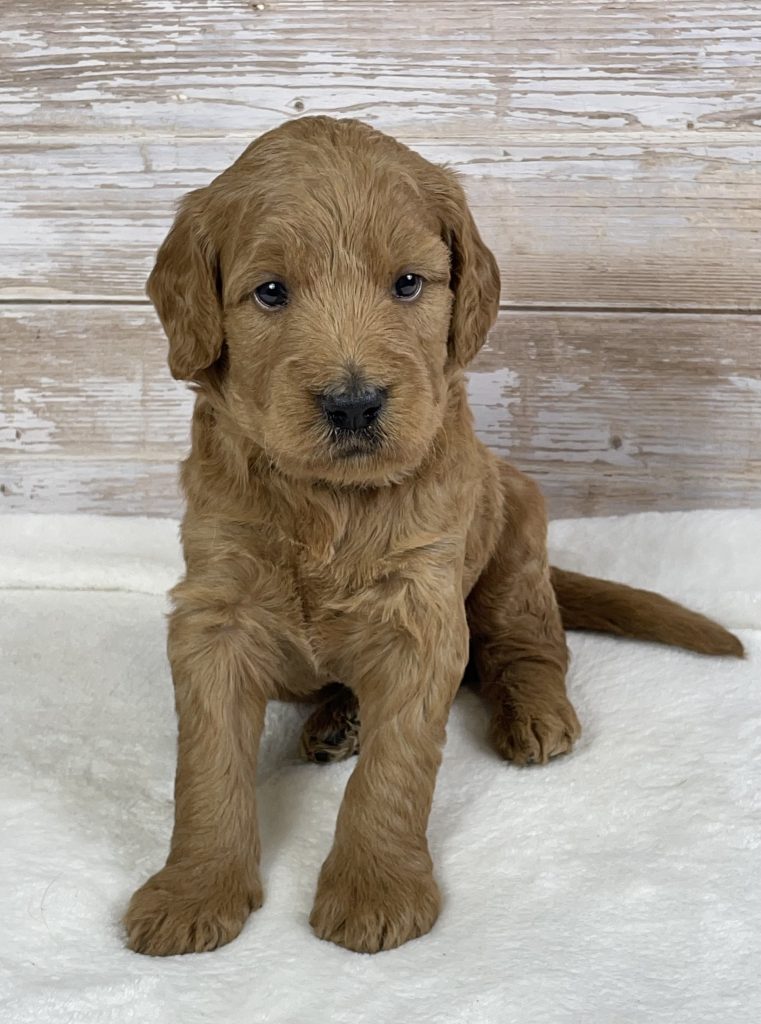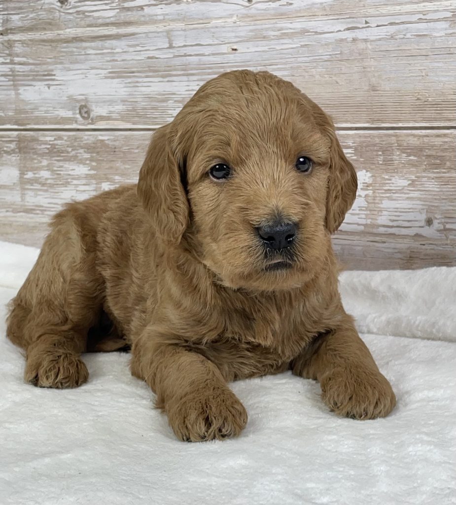 Meet Buddy, an adorable F1 Goldendoodle boy with a heart as big as his fluffy coat. Buddy is the perfect blend of Golden Retriever sweetness and Poodle intelligence, making him a wonderful family companion. He has a loving, playful personality and enjoys both cuddle time and outdoor adventures. Buddy is being raised in a caring environment, well-socialized, and accustomed to everyday family life. With his charming looks and gentle temperament, Buddy is sure to bring joy, laughter, and unconditional love to his forever home.