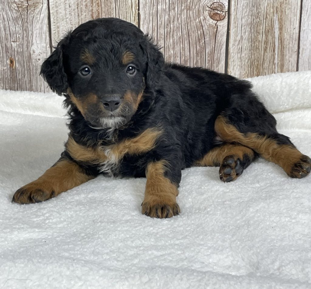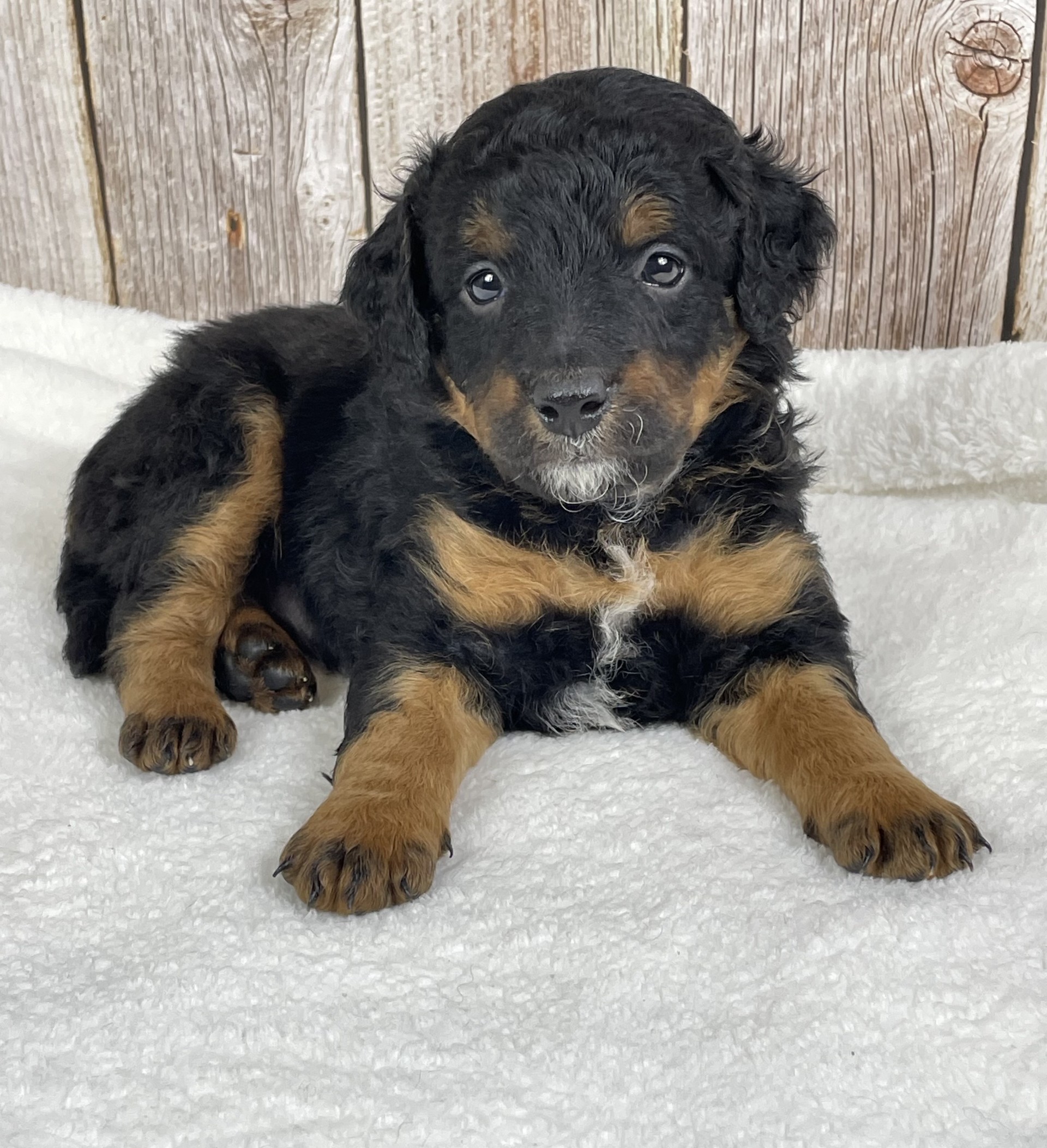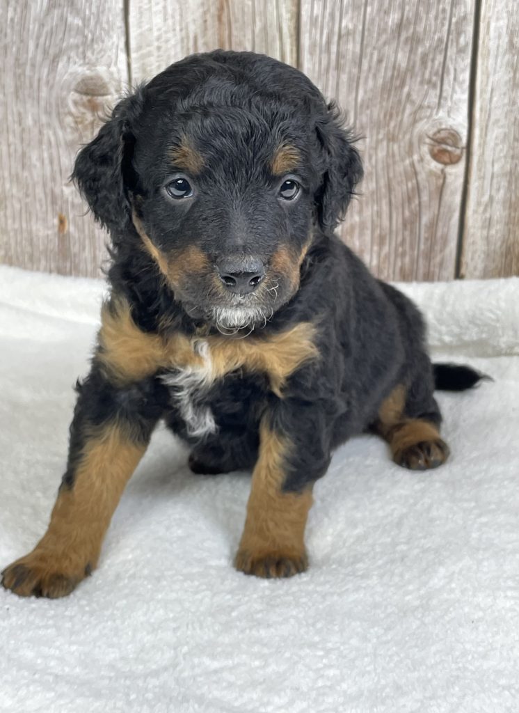Meet Coco, a truly unique and handsome Bernedoodle boy with a striking black coat accented by deep, dark rusty markings that give him a bold, unforgettable look. Coco’s beauty is matched by his gentle, loving nature — he’s affectionate, loyal, and happiest when he’s close to his person. He’s looking for that special someone to call his forever friend, someone he can bond with and share life’s everyday moments. Whether it’s playtime, quiet cuddles, or simply being by your side, Coco is ready to give his whole heart to a loving forever home. 🐾🖤