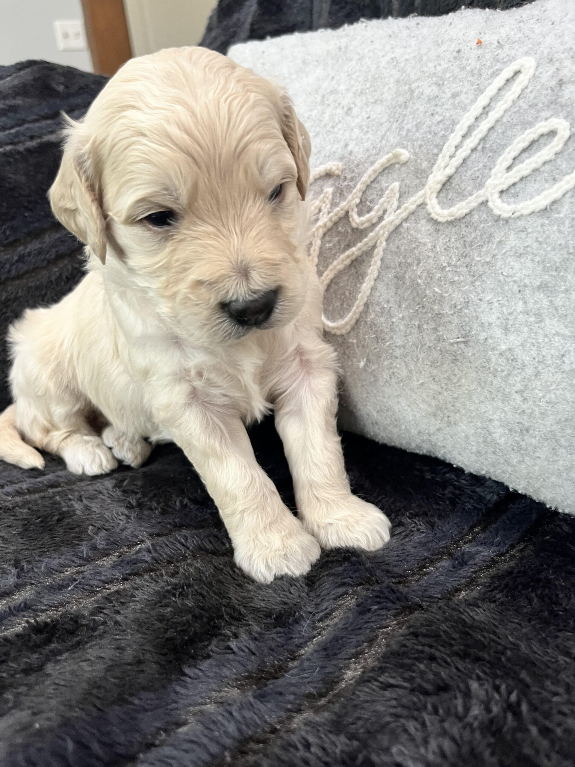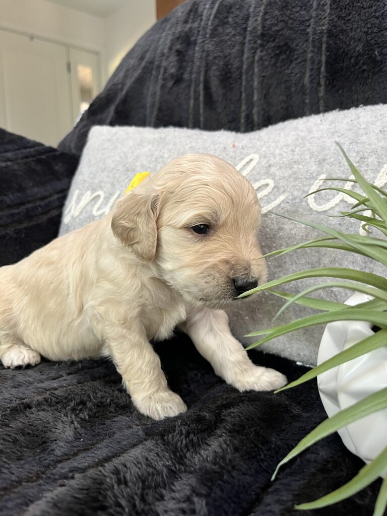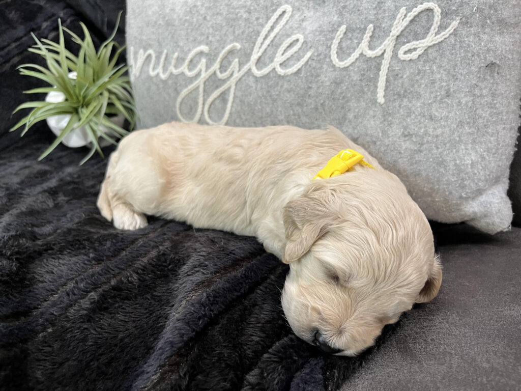 Enzo is a handsome cream-colored Goldendoodle with a soft, fluffy coat and an even softer heart. Friendly and outgoing, he loves being around people and has a playful, easygoing charm that wins everyone over. Whether he’s chasing after a toy, tagging along on an adventure, or simply curling up at your feet, Enzo is happiest when he’s part of the action. With his sweet nature and loyal spirit, he’s the perfect mix of fun and companionship.