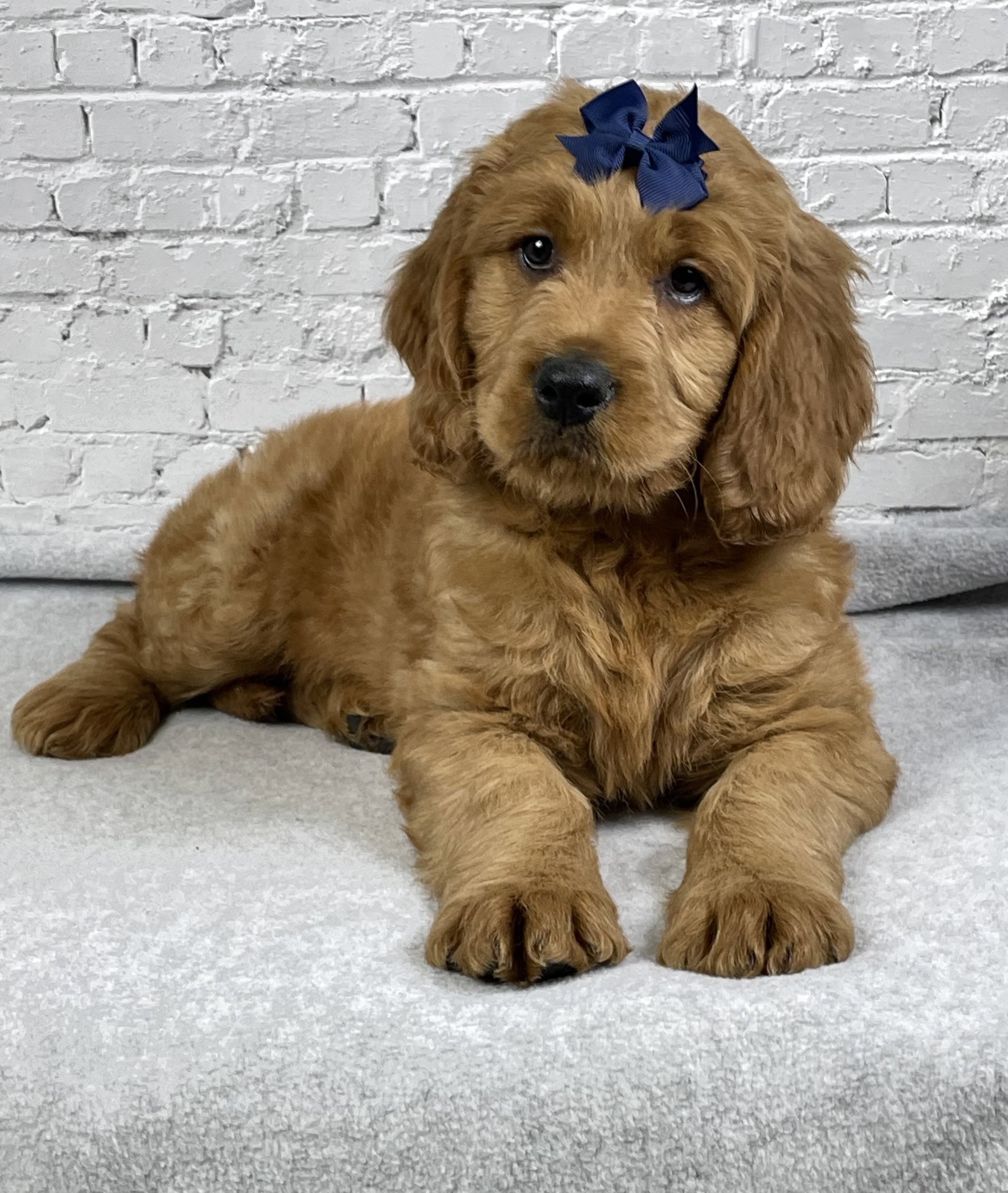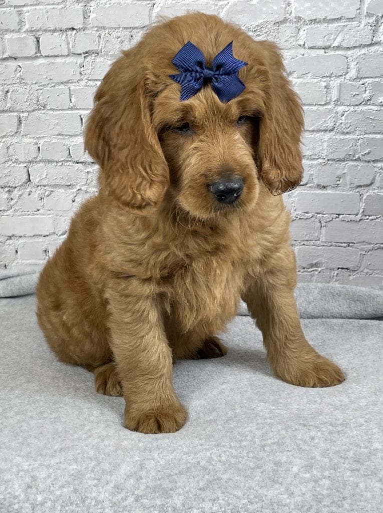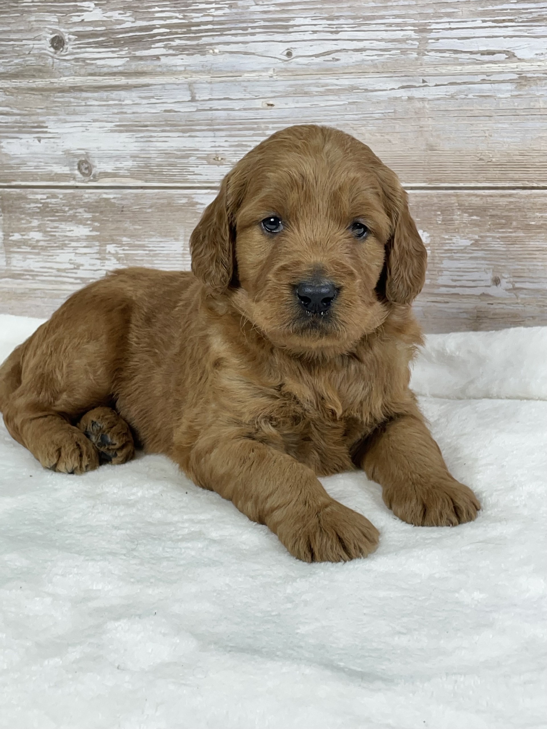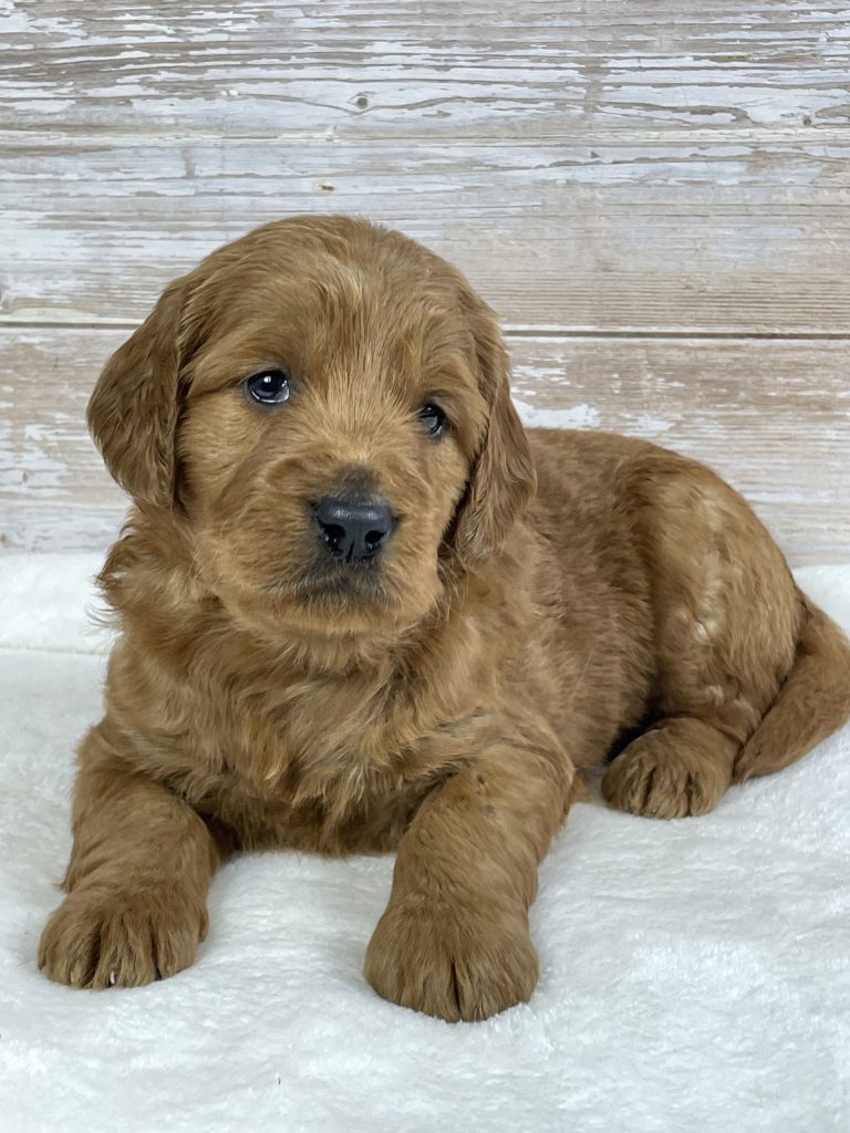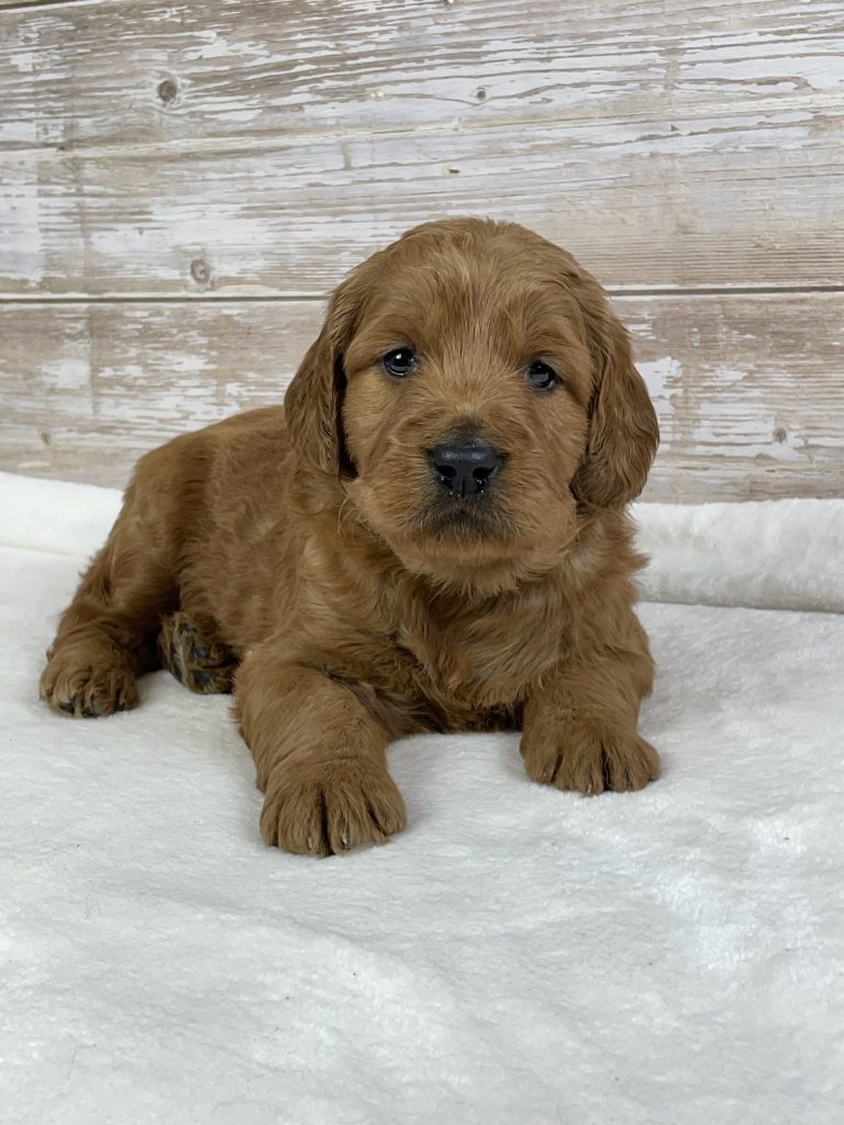 Meet Jack, a stunning Goldendoodle puppy with a big, chunky build and a gorgeous red wavy coat that instantly turns heads. Jack is a true heart-melter with his sweet expression and lovable personality. He’s playful, confident, and incredibly affectionate—always ready for cuddles or to follow you wherever you go. Raised in a loving environment and well-socialized, Jack has the perfect balance of charm and temperament that makes him an ideal family companion. With his solid structure, beautiful coat, and irresistible personality, Jack is sure to melt hearts and become a treasured member of his forever home.