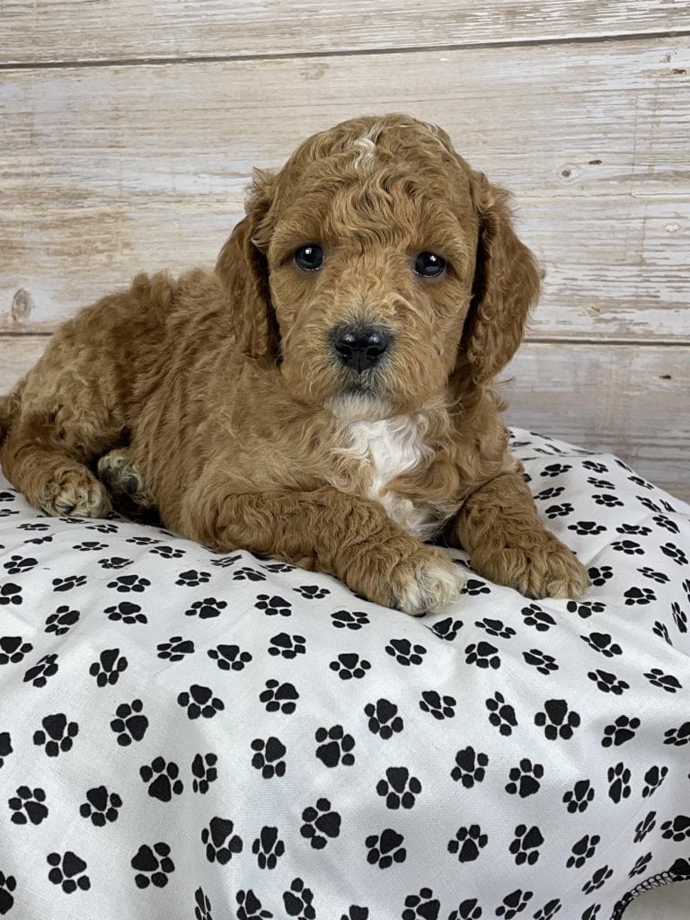 Lily’s warm apricot coloring gives her a gentle, sun-kissed glow, while her sweet white accents add just the right touch of charm and uniqueness. With her soft, fluffy coat and teddy bear expression, she’s the kind of puppy that melts hearts the moment you meet her.